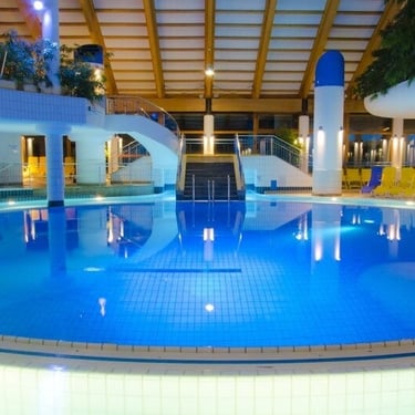 Die Therme Oberstdorf ist eine moderne Wellness- und Badeanlage im Allgäu, die mitten in der beeindruckenden Berglandschaft der Alpen liegt. Sie verbindet Entspannung, Sport und Naturerlebnis und wurde nach dem Konzept der vier Elemente – Wasser, Feuer, Luft und Erde – gestaltet.