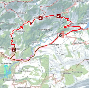 Direkt von der Alpe Leckenholz aus können Sie eine wunderschöne Wanderung ins Lecknertal unternehmen. Der Weg führt Sie entlang der Lecknerach bis zum malerischen Lecknersee. Das Lecknertal erstreckt sich über insgesamt 9 km und zieht sich bis nach Scheidwang im Allgäu, Deutschland.
