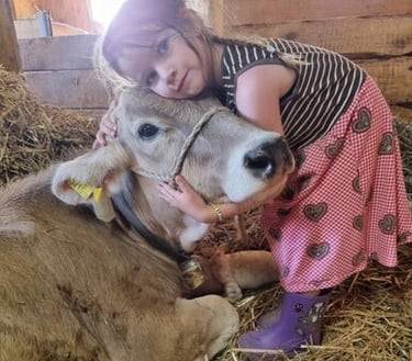 Andreas ist Landwirt aus tiefstem Herzen, während Corina zusätzlich zur Landwirtschaft ihre beruflichen Fähigkeiten nebenzu im Büro der Sennerei Lingenau einsetzt und die Ferienwohnung betreut