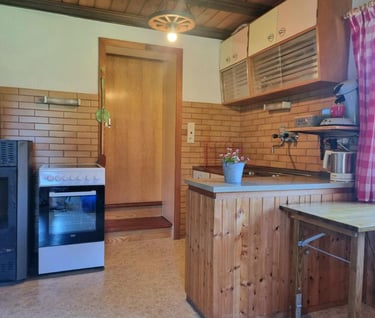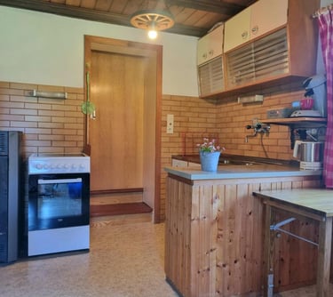 Die Küche unserer Alphütte ist perfekt ausgestattet, um Ihnen während Ihres Aufenthalts alles zu bieten, was Sie benötigen. Hier finden Sie alles, was zum Kochen und Zubereiten von Mahlzeiten erforderlich ist – von Kochutensilien über Töpfe und Pfannen bis hin zu Geschirr und Besteck. Natürlich gehört auch eine Kaffeemaschine dazu, damit Sie Ihren Morgen mit einer frisch gebrühten Tasse Kaffee genießen können.