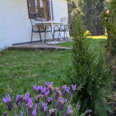 Die Hütte liegt in absoluter Alleinlage und besteht aus zwei getrennten Wohneinheiten. Gelegentlich wird der hintere Teil von einem ruhigen, älteren Ehepaar genutzt, das nur ab und zu vor Ort ist. Dennoch genießt man als Gast vollkommene Ruhe und Privatsphäre – der eigene Bereich ist zur entgegengesetzten Seite ausgerichtet, zudem sorgt der dazwischenliegende Stall für zusätzliche Abschirmung.